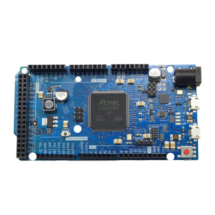 برد آردوینو Due مبتنی بر میکروکنترلرهای خانواده Atmel SAM3X8E ARM Cortex-M3 است. این برد به عنوان اولین برد آردوینو مبتنی بر پردازنده های ARM 32 بیتی شناخته می شود.ویژگی اصلی برد آردوینو Due بهره گیری از تراشه 32 بیتی قدرتمند SAM3X8E ساخت ATMEL می باشد که بر پایه معماری ARM Cortex M3 با فرکانس 84MHz بنا شده است. برد آردوینو Due دارای 54 پین دیجیتال ورودی/خروجی (پشتیبانی 12 پایه از PWM)، 12 ورودی آنالوگ، 4 پورت UARTs (پورت های سریال سخت افزاری)، یک نوسان ساز 84 مگاهرتزی،یک DAC (دیجیتال به آنالوگ)، 2 عدد TWI، یک پاور جک، یک SPI header، یک JTACG header، یک دکمه ریست و یک دکمه Earse می باشد.