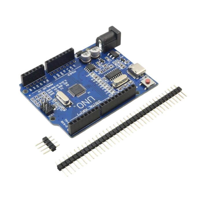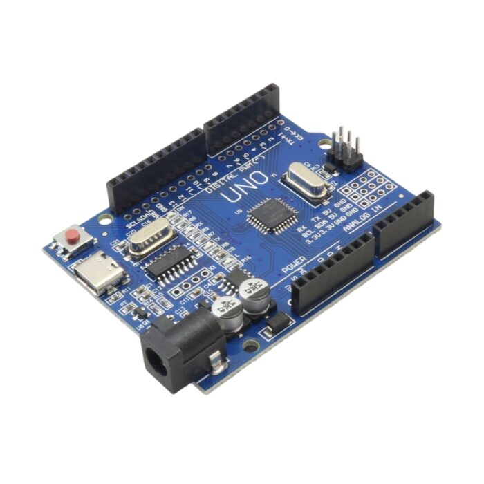 برد آردوینو Uno با چیپ مبدل CH340 با درگاه USB Type-C مبتنی بر میکرو ATmega328 دارای 14 پین ورودی/خروجی دیجیتال و 6 پین PWM و 6 پین ورودی آنالوگ