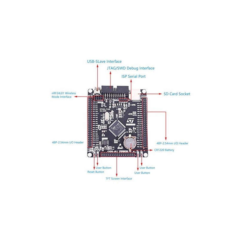 این برد توسعه بر اساس میکروکنترلر پرکاربرد STM32F407VET از خانواده Cortex M4 طراحی شده که دارای امکانات بسیار کاربردی می باشد. علاوه بر خروجی پایه های میکروکنترلر، امکان اتصال ماژول های کاربردی و نمایشگر را دارا می باشد.