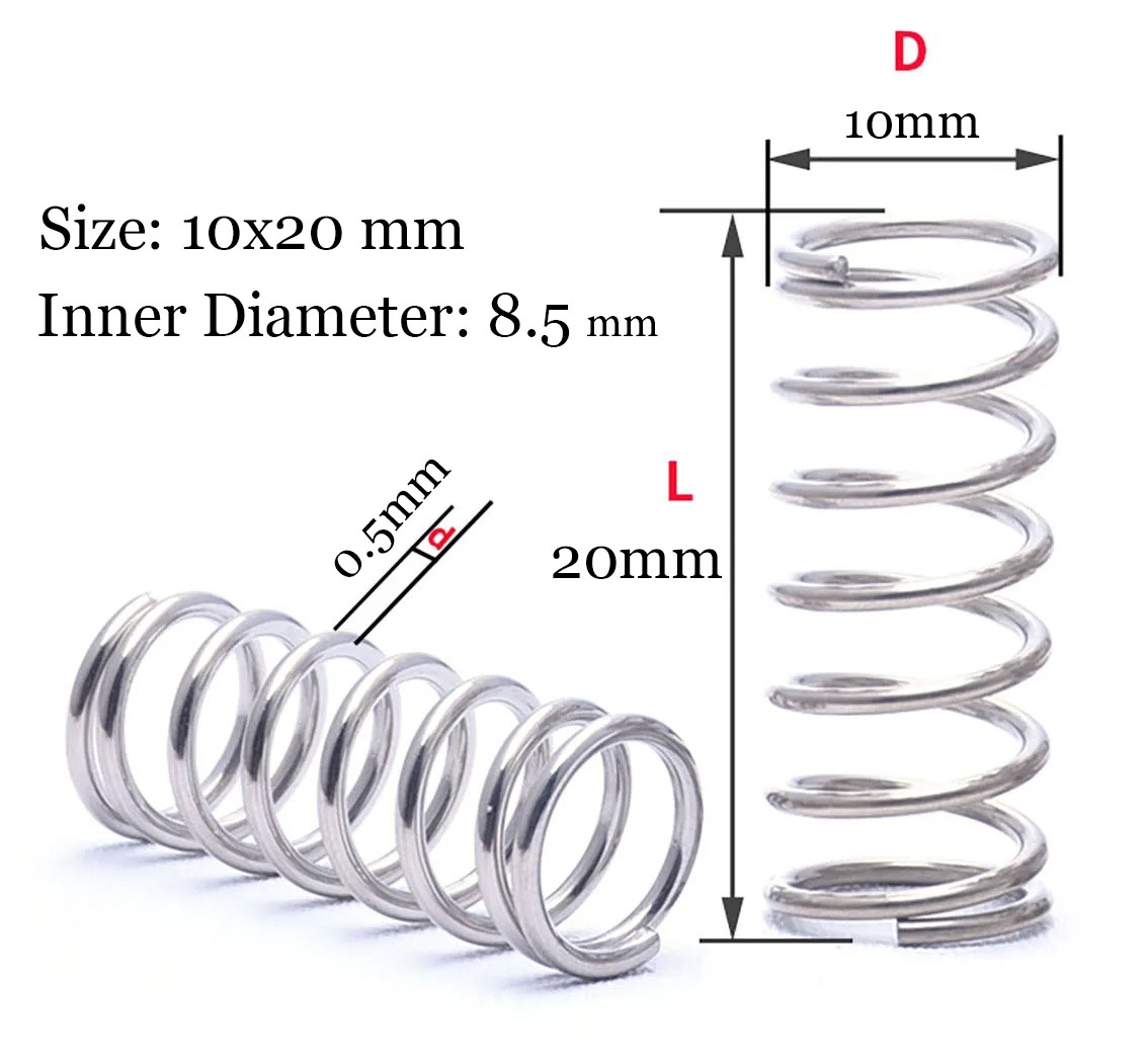 فنر سایز 20×10 با قطر داخلی 8.5 میلیمتر و ضخامت سیمی 0.5 میلی متری