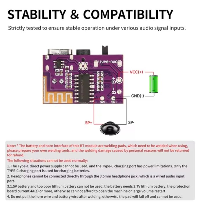 - ⚠️ توجه: استفاده از باتریهای ضعیف یا زیر ۳.۵V باعث عملکرد ناپایدار یا روشن نشدن ماژول میشود.