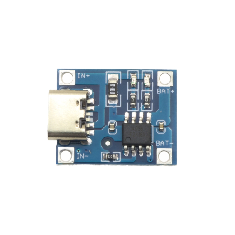 ماژول شارژ TP4056 با ورودی USB Type-C یک راهکار ساده و مطمئن برای شارژ باتریهای لیتیومیون یا لیتیومپلیمر تکسل (3.7V) است. این ماژول از تراشهی TP4056 بهره میبرد که امکان شارژ دقیق و ایمن را با جریان حداکثر 1 آمپر فراهم میسازد. ورودی تغذیه از طریق درگاه USB Type-C یا پایههای +IN و -IN انجام میشود و خروجی به پایانههای BAT+ و BAT- متصل میشود. ولتاژ شارژ نهایی این ماژول 4.2V بوده و با دقت 1.5٪ کنترل میشود. دو LED نشانگر وضعیت شارژ را بهصورت بصری نمایش میدهند؛ LED قرمز در حال شارژ و LED آبی هنگام شارژ کامل فعال میشوند. این ماژول به دلیل ابعاد کوچک، نصب آسان، و قیمت مناسب در انواع پروژههای قابل حمل، دستگاههای DIY، پاوربانکها و شارژرهای سفارشی باتری کاربرد فراوان دارد. لازم به ذکر است خروجی باتری نباید بهصورت معکوس متصل شود، چرا که ممکن است باعث آسیب دائمی به تراشه شود.