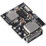 This module is for charging and discharging single-cell lithium-ion batteries, which has a Type-C input, allowing easy charging with common mobile chargers. In addition to precise control of the charging process (with a configurable voltage of 4.2V or 4.35V), the module’s internal circuit includes a high-efficiency boost converter that boosts the battery voltage to a constant 5V. This feature makes the module very suitable for building power banks, portable power supplies, or directly powering 5V circuits. The output current of up to 2A makes it possible to run various devices such as smartphones, Arduino boards, IoT modules, and portable equipment. The compact design, the presence of charge/discharge status LEDs, and the voltage and current protection circuit are other advantages of this module.