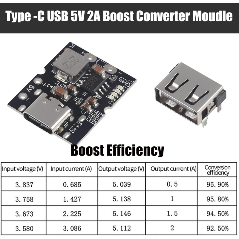 - راندمان تبدیل: حدود 92.5% (در ورودی 3.6V، خروجی 5V/2A)
