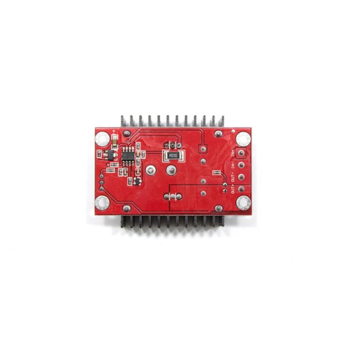 این ماژول افزاینده ولتاژ از نوع BOOST با توان بالا، توانایی تبدیل ولتاژ ورودی در بازه 10V تا 32V به خروجی قابل تنظیم یا ثابت در محدوده 12V تا 35V را داراست. طراحی صنعتی و استفاده از دو هیت‌سینک آلومینیومی موجب دفع مؤثر حرارت در جریان‌های بالا تا سقف 10 آمپر شده و استفاده مداوم در توان‌های بالا (تا 150W با تهویه مناسب) را امکان‌پذیر می‌سازد. بهره‌وری بالا تا 94٪ و ریپل خروجی پایین (حداکثر 2٪) این ماژول را برای کاربردهای حساس و بارهای الکترونیکی دقیق مناسب کرده است. از طریق پتانسیومتر تعبیه‌شده روی ماژول، خروجی قابل تنظیم بوده و برای تغذیه لپ‌تاپ‌ها، ماژول‌های قدرت، تجهیزات رباتیک و ابزارهای صنعتی کاربرد فراوانی دارد. توجه داشته باشید که این ماژول فاقد حفاظت در برابر اتصال کوتاه و پلاریته معکوس است و استفاده از فیوز یا دیود خارجی برای ایمنی توصیه می‌شود.