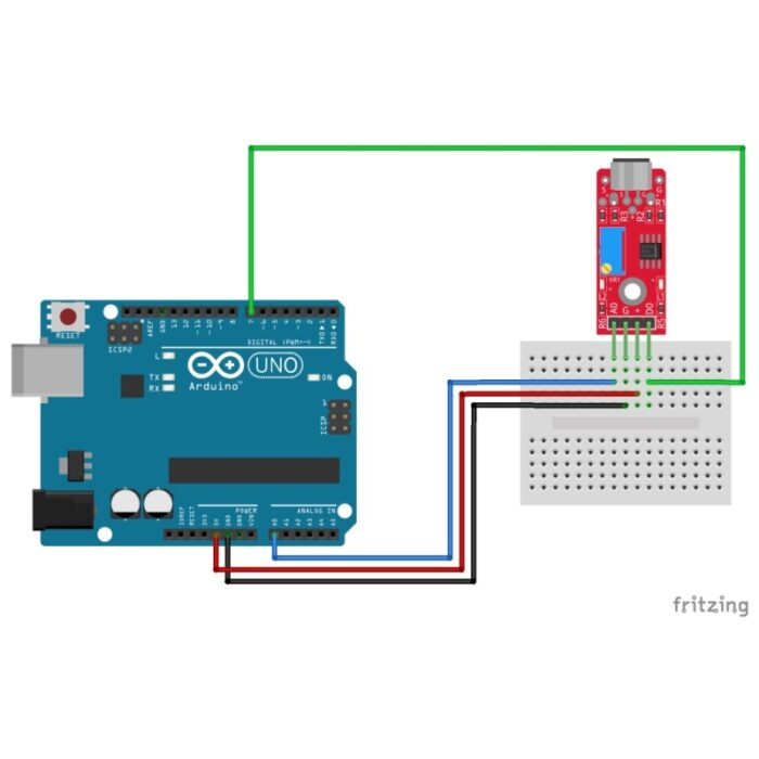 - برای مثال میتوان LED را به پین 13 وصل کرد تا هنگام تشخیص صدا روشن شود.