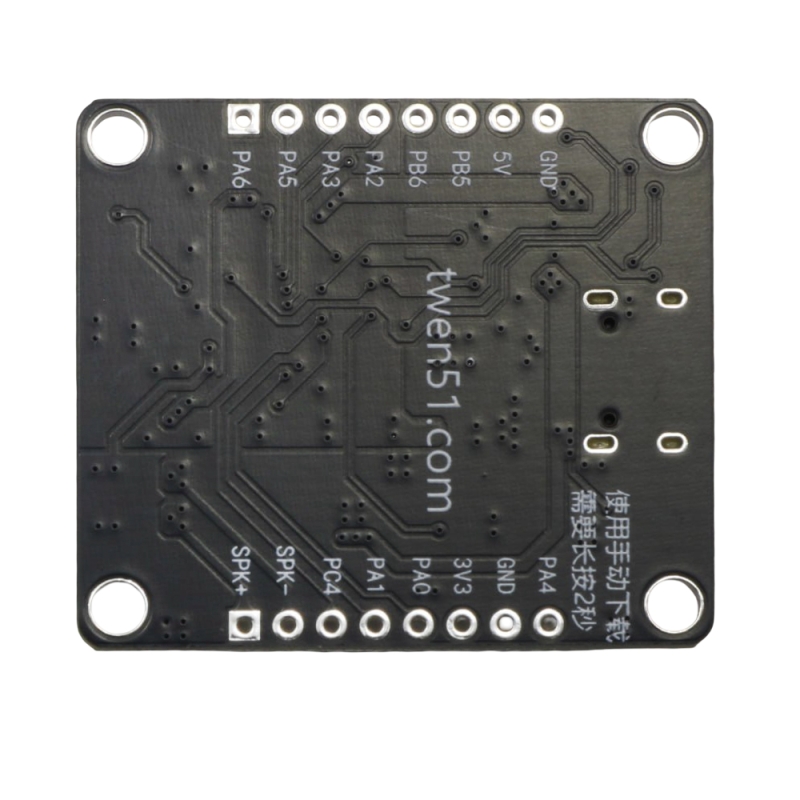 Single chip application supports the connection of many peripherals, with rich peripherals, 3-channel UART, 6-channel PWM, 10 IO ports, multi voice broadcasting, and 18 kinds of broadcasting in Chinese, English and dialect