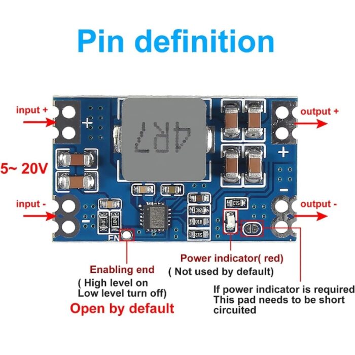 This module is a DC to DC BUCK converter with a constant voltage output of 12V. This module is capable of delivering up to 5 amps. The buck converter is a step-down converter that allows you to have lower voltages than the input using this module. The operating frequency of the Buck converter of this module is 500KHz and the efficiency of this module is about 99 percent.